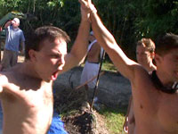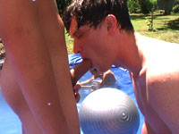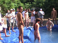 there is nothing like a nice summer time splash, especially when the pool is man made and ghetto rigged as fuck! these poor pledges had to play blind folded in this hole in the ground filled with water. The winners of course were excempt from hell week but the losers had to pay the ultimate price! I mean its not embarrassing enough playing naked in a nasty fake pool. as punishment for losing these unfortunate pledges had to suck each their off in front of their brothers and fellow pledges.