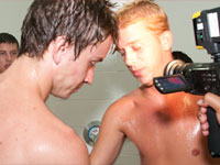 We got this tape from a college down south.. I won't name names. These stupid ass pledges weren't wearing their special signs in the showers so the brothers are here to fuck with them and make them pay. After some really embarrassing ass washing and butthole eating they two pledges that get it the worst have to jerk each other off and then fuck each other. All the other pledges were made to watch. All in all it was a wet, wild night for these young college boys.