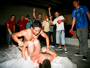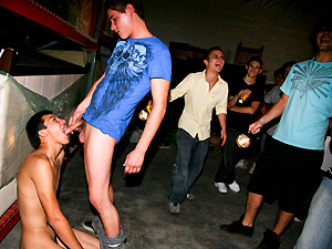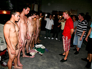So the guys at one of our favorite west coast fraternity's decided to throw their annual warehouse party. As usual they brought their video camera's along to record the events and plenty of pledges to break in. Man when these guy's break in pledges they really break them in...lol. You got all the makings of a good hazing in this one :screaming, push-ups, jumping-jacks, dick sucking, and tacky outfits. You won't want to miss this one. Don't forget to check out the trailer by "Uncle Knuckle".